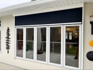 Zip Shades are the superior solution to creating outdoor living spaces for your patio or garage.  Also can be used to provide exterior protection for your high sun exposure windows.  Up to 80mph wind guarantees, wide variety of fabrics (openness and colors) available.   Available in widths up to 20′ wide and motorized or manual operation.